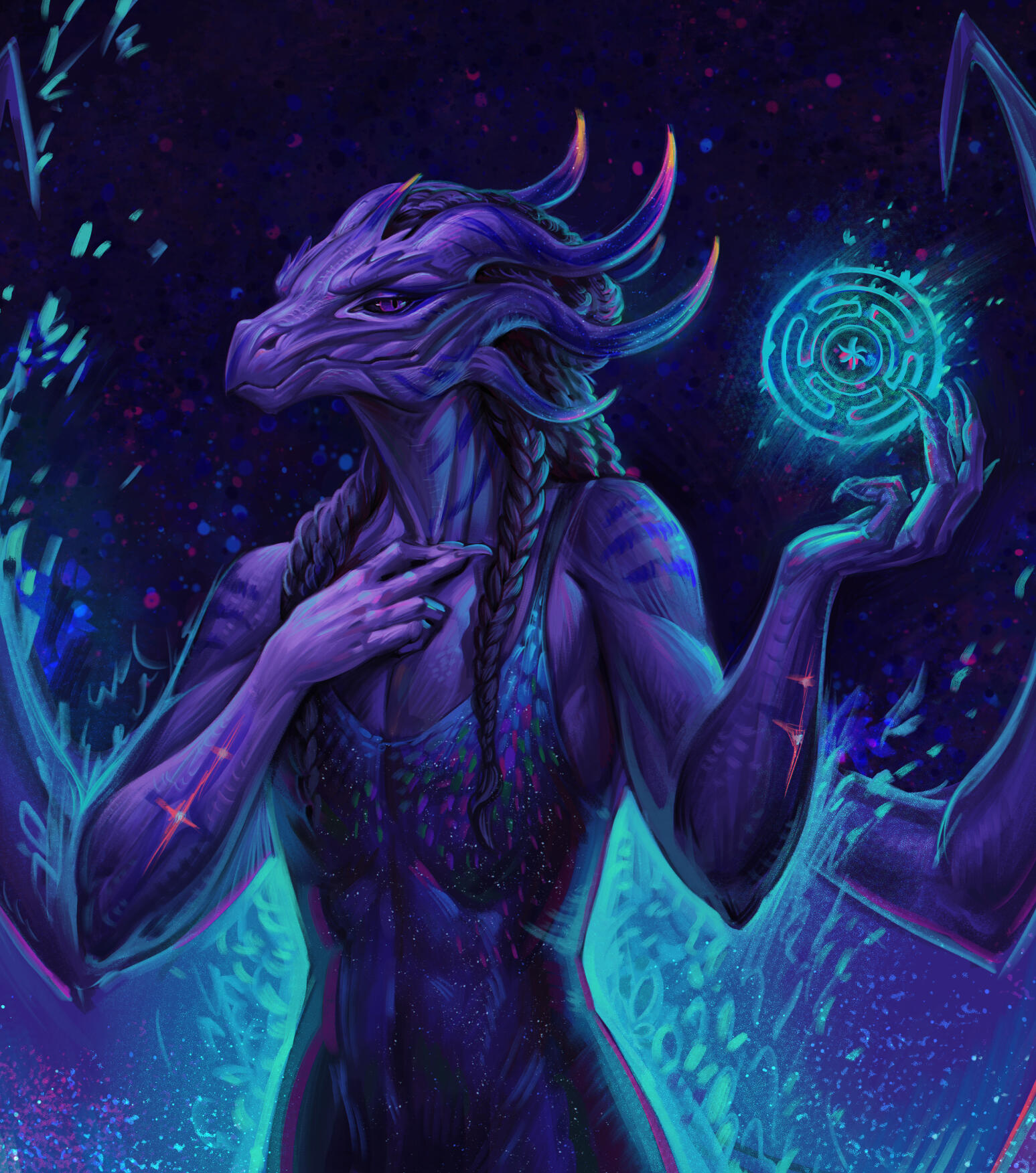 Detailed portrait of your character with abstract or simplified background. Includes shoulders and chest, optionally hands. Price may increase depending on complexity: scales, feathers, fur, jewellery, etc.